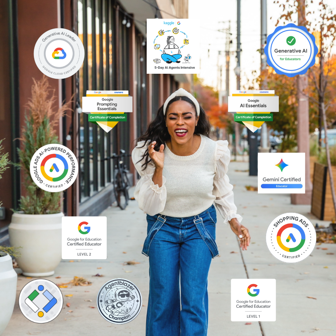 My path has always lived at the intersection of education, technology, and people. I’m a professor and curriculum writer, direct a tech bootcamp for AI-enabled careers, and previously founded an ed-tech startup after beginning my career in K–12 education. For the past five years, I’ve been a Grow with Google Coach, training 10,000+ people in AI and digital marketing and earning 25+ AI certifications, 100+ courses completed, and 100+ skill badges across Google, Salesforce, and cloud technologies.